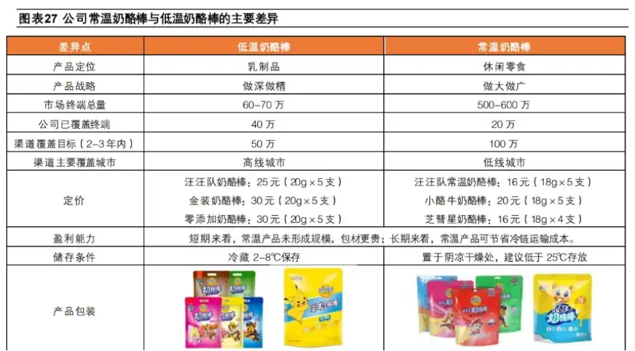 相比低温奶酪棒,常温奶酪棒可渗透市场空间更为广阔:
