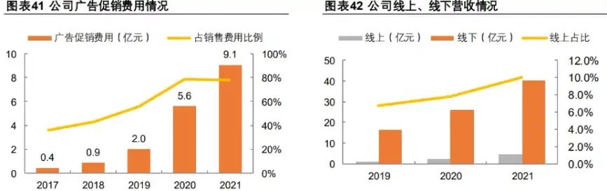 为巩固品牌传播声量,妙可蓝多通过传统媒体和新媒体进行了大量的广告投放,广告促销费用逐年攀升,到 2021年,广告促销费用在销售费用中占比接近 80%。
