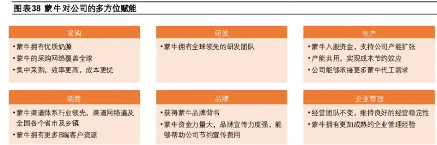 5,品牌端,借力蒙牛知名度,提升公司品牌力;