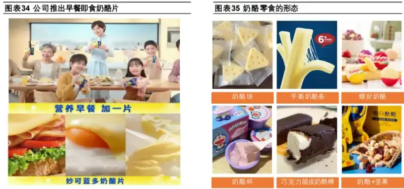 2021 年,公司在早餐消费场景,创新性地推出了香甜口味的奶酪片,为奶酪产品进入家庭餐饮开辟了新路径。该产品与中西式早餐均能搭配,既能添加在西式包点中,也能添加在中式粥品中,提高早餐的营养价值。